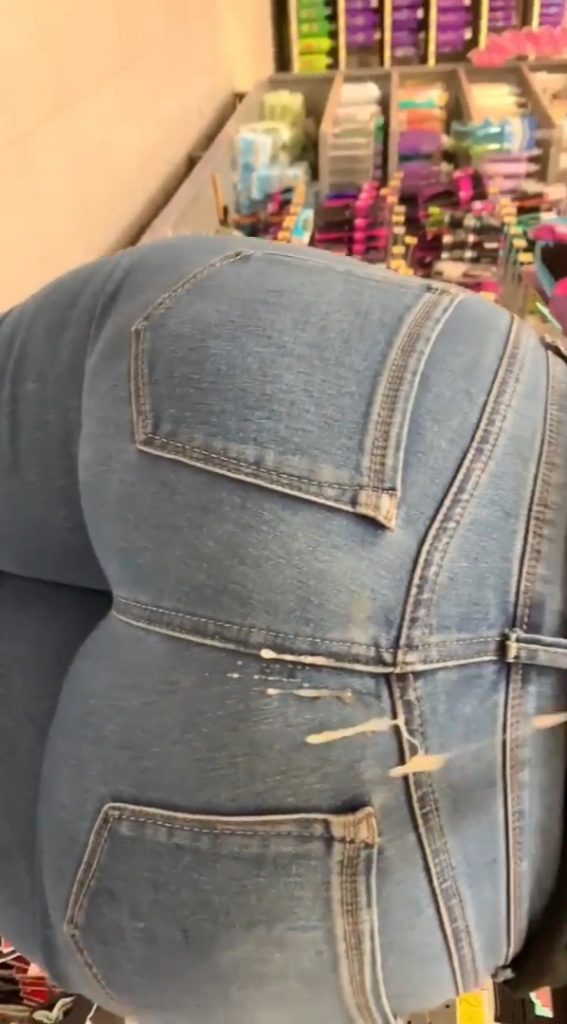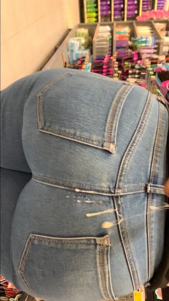 Hot big ass cumshot over tight jeans of sexy pawg candid video.