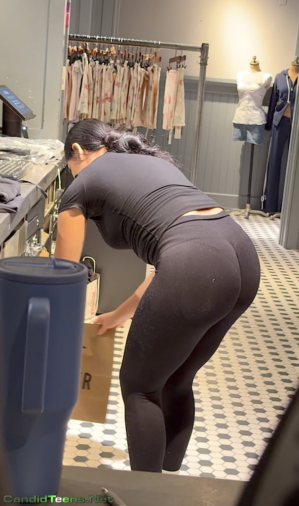 Sexy bubble ass hot latina at store in tight leggings creepshot.