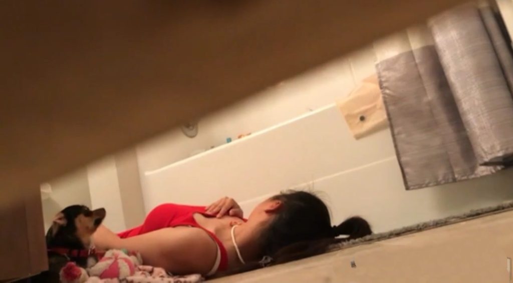 Horny stepsister caught masturbating on hidden cam in her bathroom floor again.